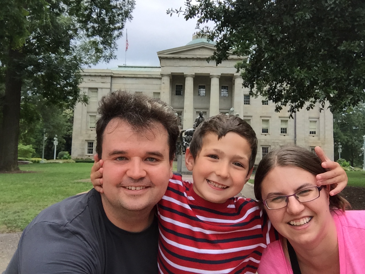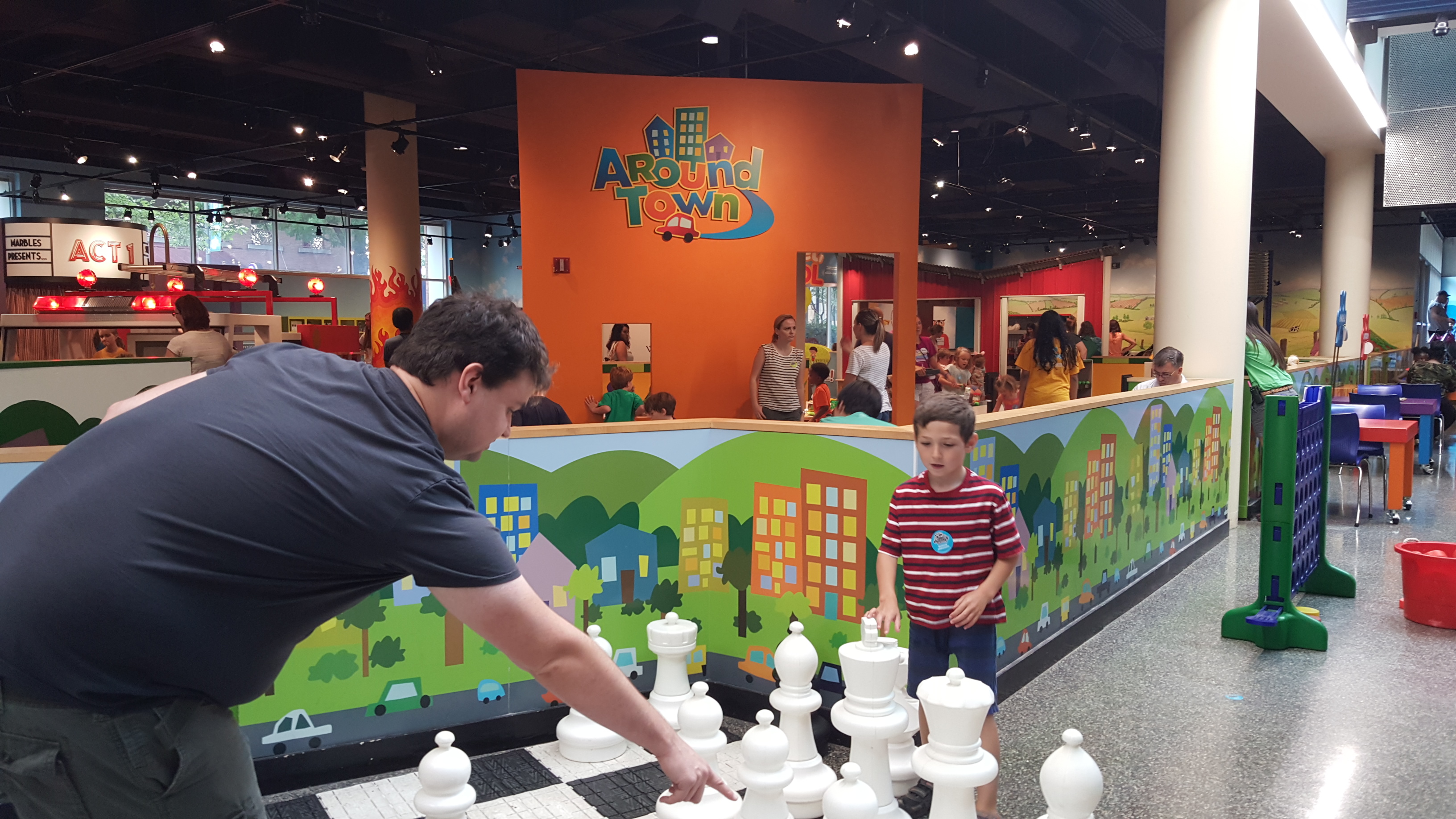 We finally made it to Raleigh, the largest city and capital of North Carolina. We took our friends’ son to the children’s museum there, Marbles. Chris was unfamiliar with the concept so I assume other British people may be as well. Most major American cities have what is sort of an educational indoor play area. It will attempt to teach children about some of the basics of life, for instance, this one had sections about personal finance, farming and electricity, but done in a way that all felt like fun and games to kids. This literally was just a giant game: