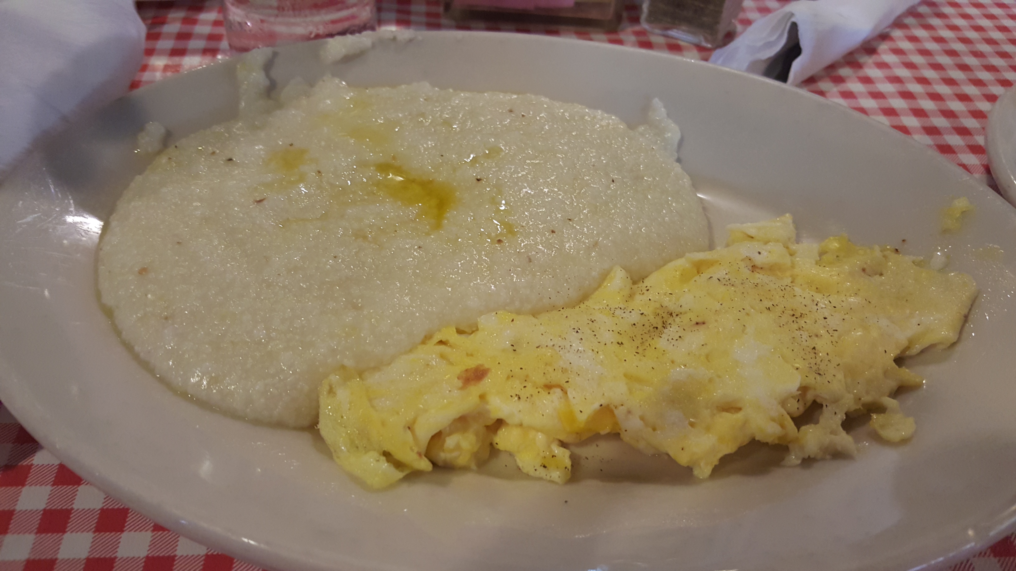 After that, we had some lunch. We both tried grits for the first time. I mainly mention this because even living in the US 25 years, I had never had them and many English people and tv programs seem to mention them when the south or an unknown food commons up. It honestly didn’t taste like much of anything. I must admit, I am way more into the biscuits, which to our British readers, according to Chris, are a bit like scones, but less sweet and you are allowed to put fried chicken in it instead of jam.