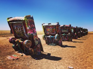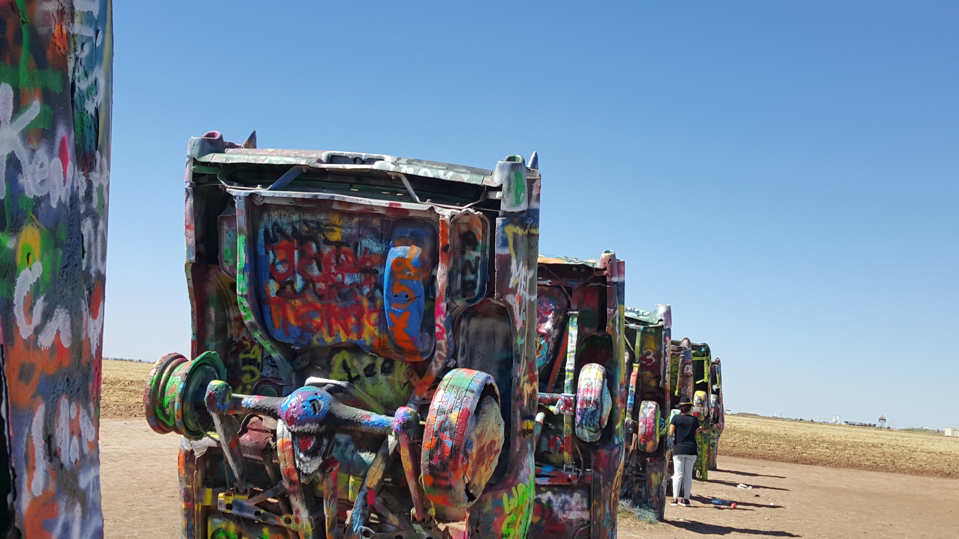 Amarillo has a weird free attraction just as you’re heading out of town, these upturned Cadillacs in a field that people are allowed to graffiti: