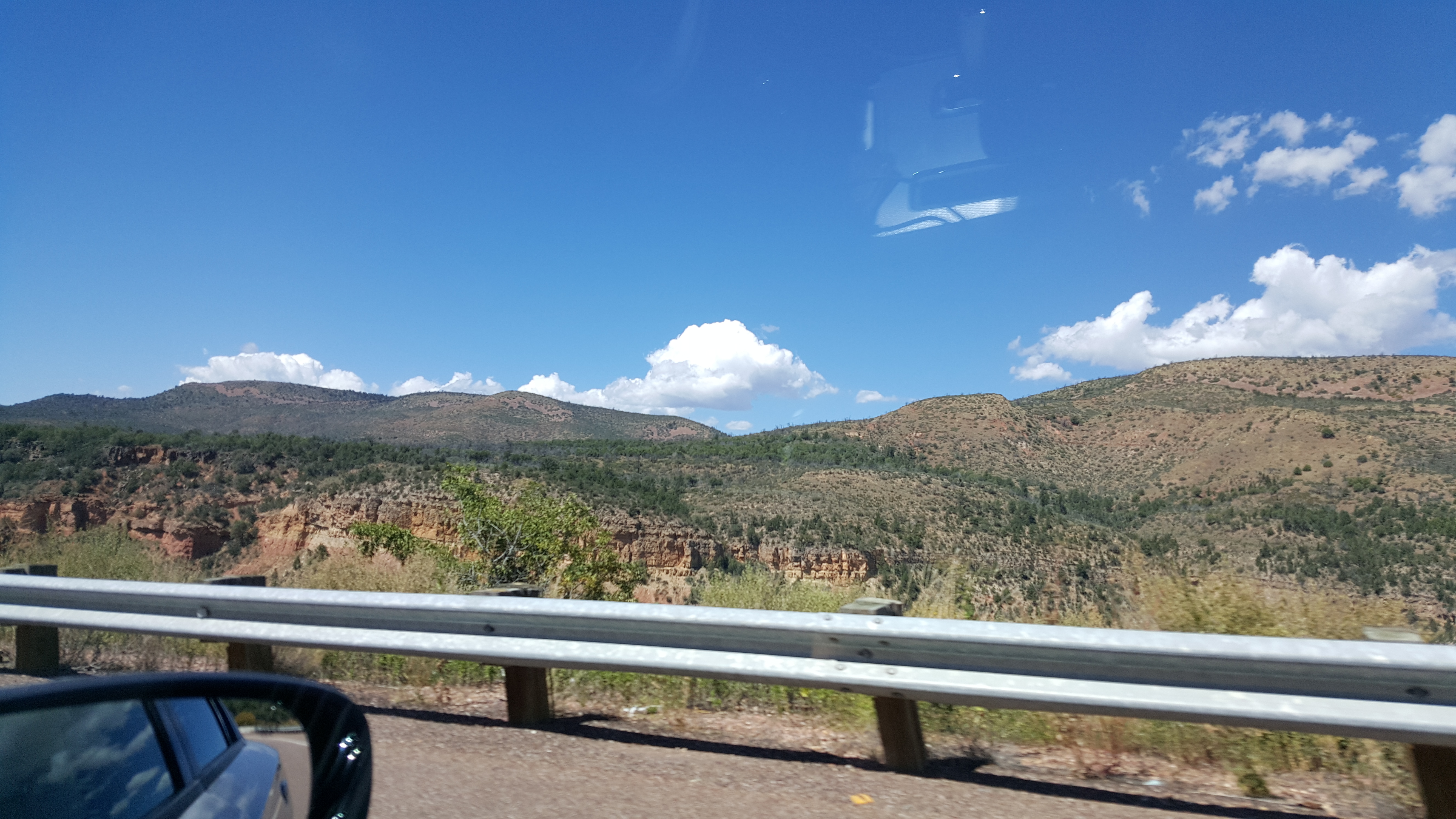 It changed immediately. The New Mexican road had been extremely flat and straight. You could see for miles. Not so in Arizona. We were on a winding mountain road for probably 100 miles through two Indian reservations. We also changed time zone again. Arizona does not do the whole summer time thing, which is fair enough in the desert, but it meant that during the summer, it is functionally on Pacific Time, so before even getting used to Mountain Time, we gained another hour, causing us to enter at 10:20 in the morning and wanting to have lunch at 11.