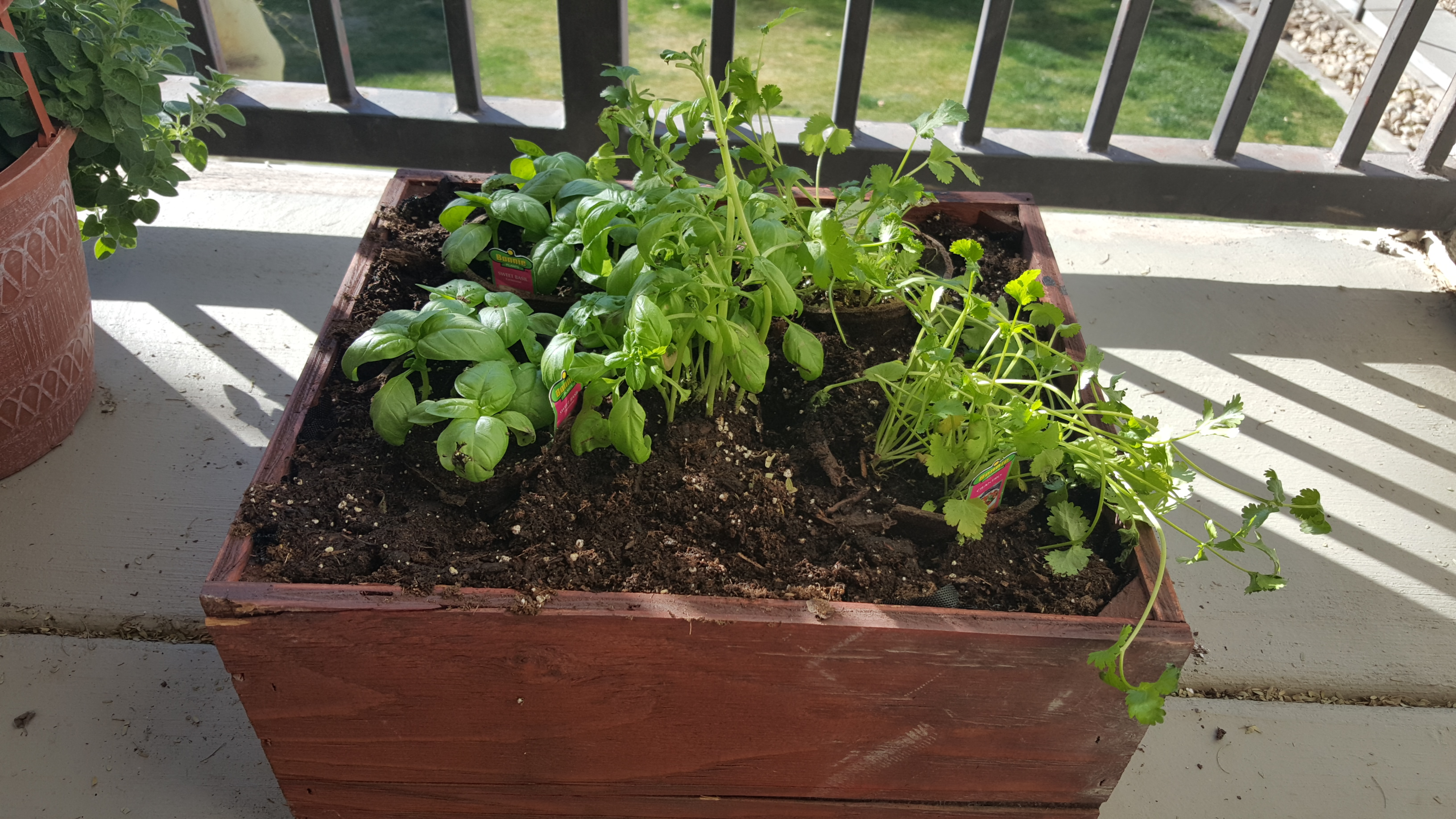 As we have outdoor space, but no outdoor access to the ground since we are on the second floor, we got a box to put our basil and cilantro/coriander in: