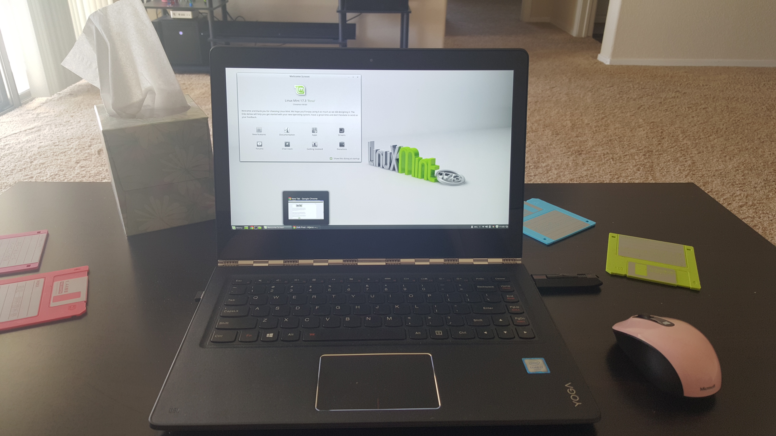 After several days of trying it out on a stick, we installed it permanently. As we mentioned in the previous post, without using a beta version of the Linux kernel, the network, the touch screen and the touch pad didn’t work, but with a change of kernel, we got them working for the permanent copy.