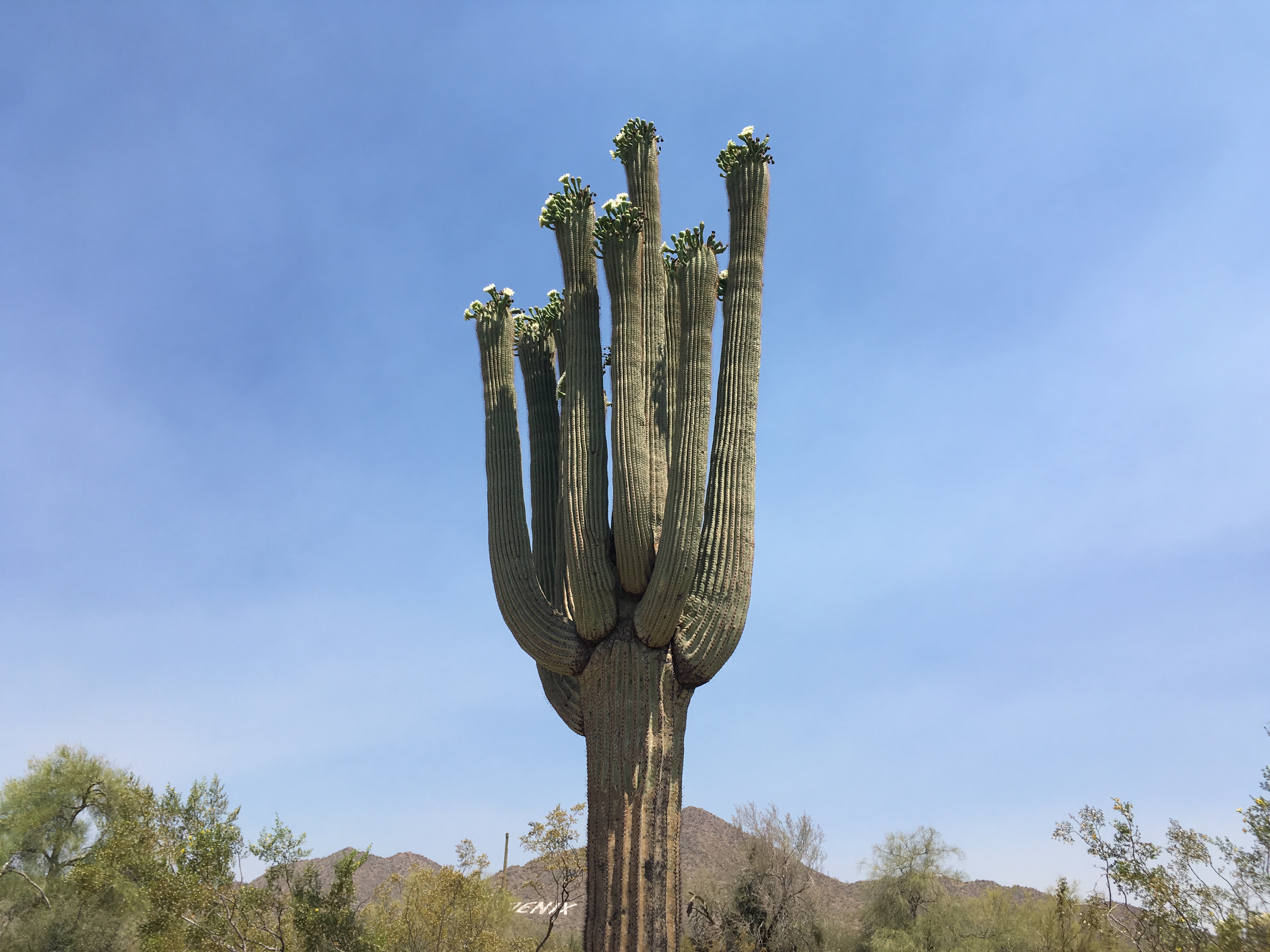 We learned from the man in the shop that Mesa and up into the mountains is a wetter part of the Sonoran desert, whereas Phoenix proper is drier, so Papago Park, another go to location for showing people the desert, is a drier representation.