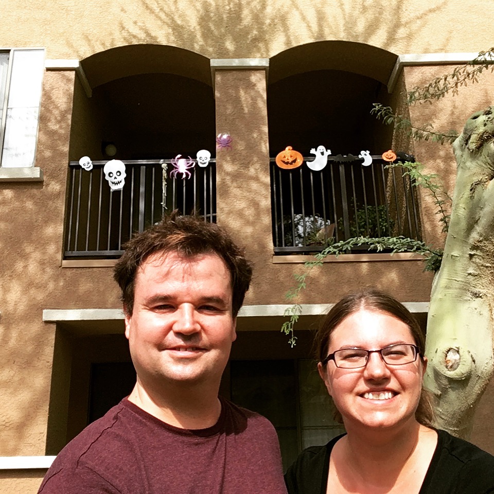 Two things happened that admittedly made Halloween a lot less fun than it could have been. The first thing is that we had absolutely no trick or treaters, so Chris didn’t get to experience a lot of what the difference from the UK. I was surprised at this. We live in an apartment, but in the context of a massive gated community with lots of kids. I don’t know where they did their trick or treating, but it wasn’t locally. We didn’t see a child all day and the only person I saw dressed up even a bit was myself.