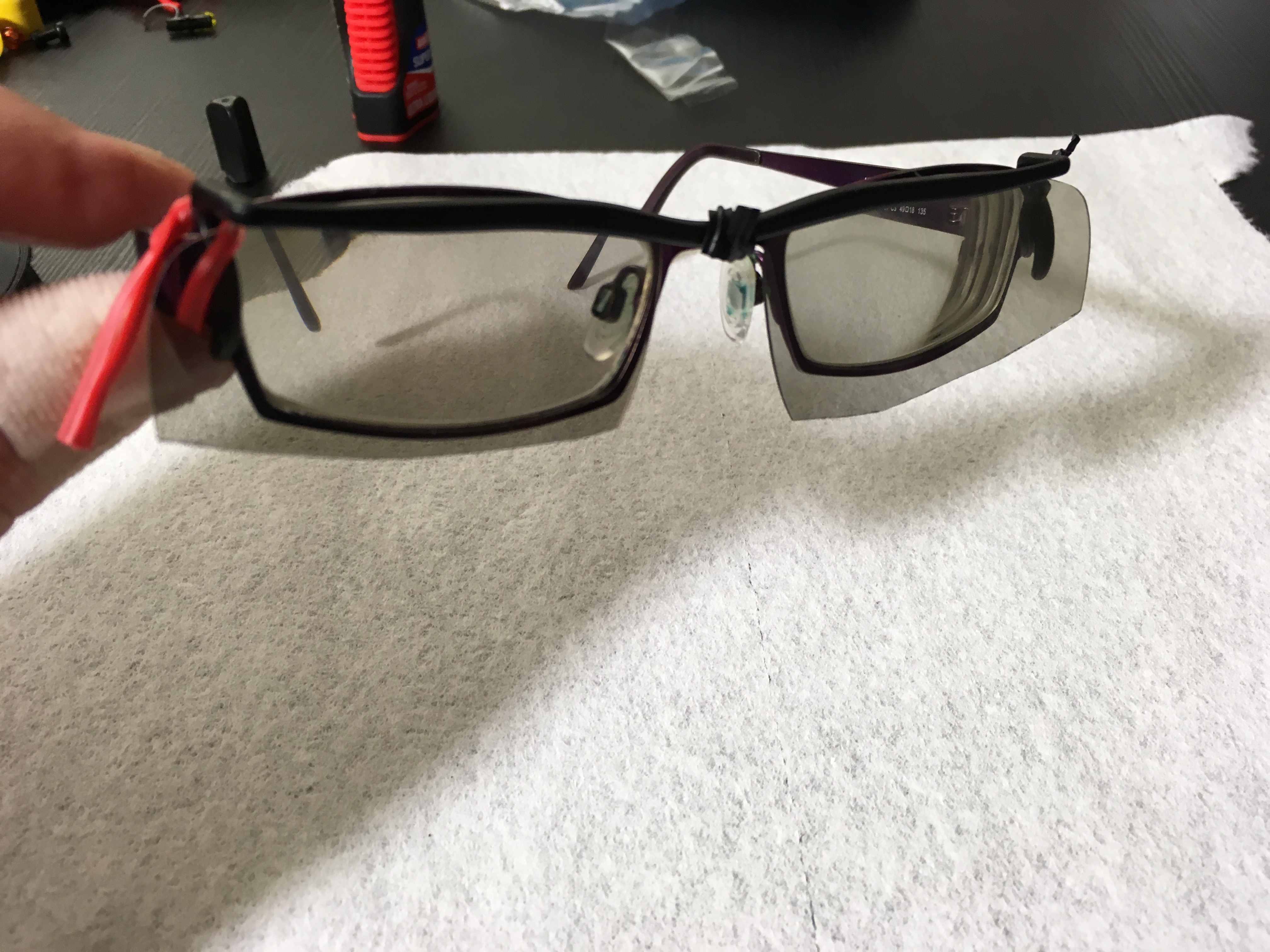 I felt bad that Chris has basically not seen a 3-D movie in years because I couldn’t cope, so we decided to try getting clip-on 3-D glasses from Amazon. They were actually just as terrible as any in cinemas as they were actually too small to clip on properly, so we decided to just cut them up a bit and attach them to my glasses. This looked absolutely ridiculous, but it did allow my glasses to be properly connected to the extra lenses. I think this is the problem most glasses wearers have with 3-D: the cinema glasses tend not to sync perfectly with their own glasses, which causes nausea and headaches.
