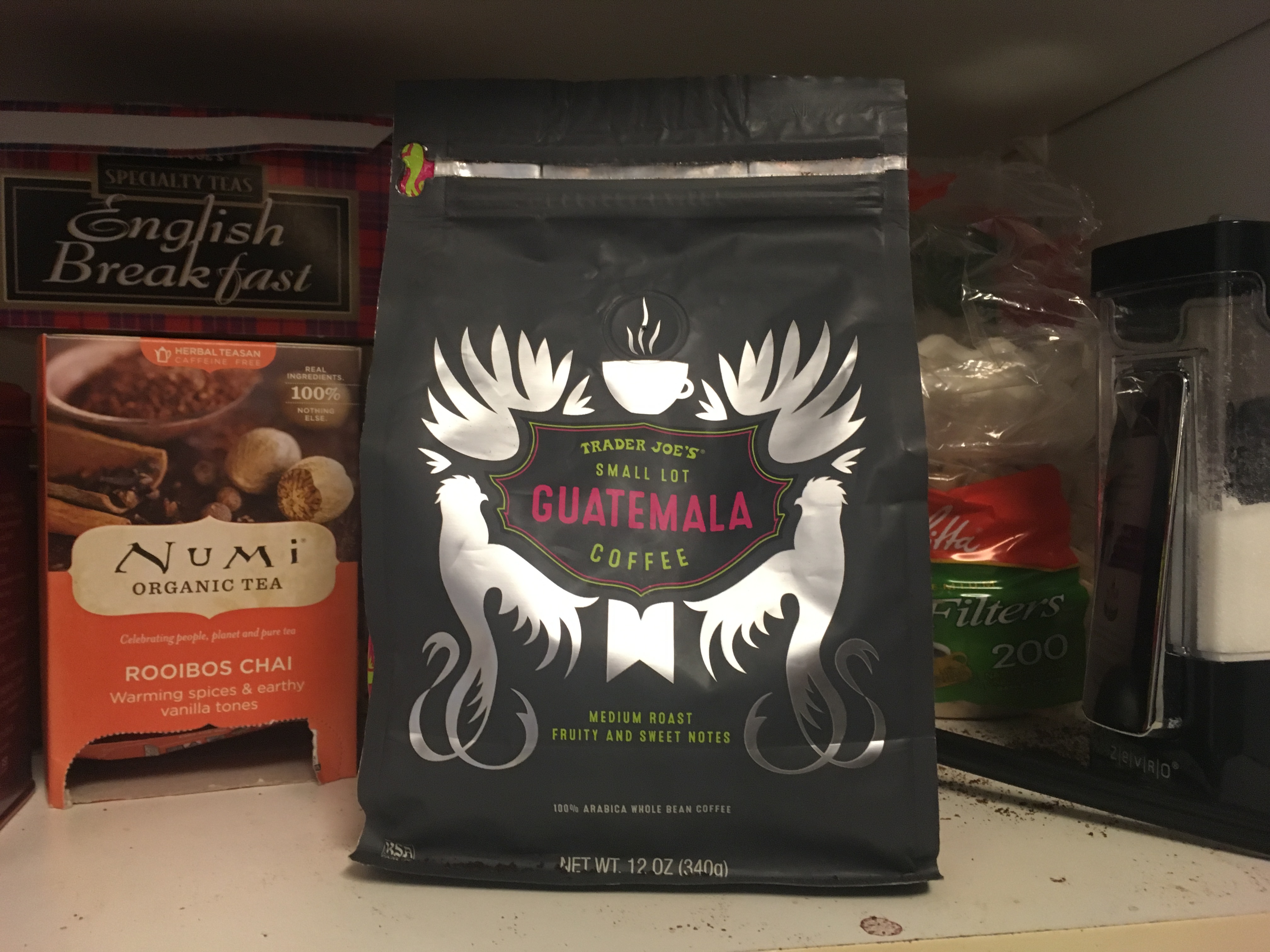 Once we’d had it a few weeks, rather than it making the coffee we already drank dramatically different, it just made me more likely to want to try other whole bean coffees. I can very much recommend Small Lot Guatemalan Coffee from Trader Joe’s as absolutely delicious: