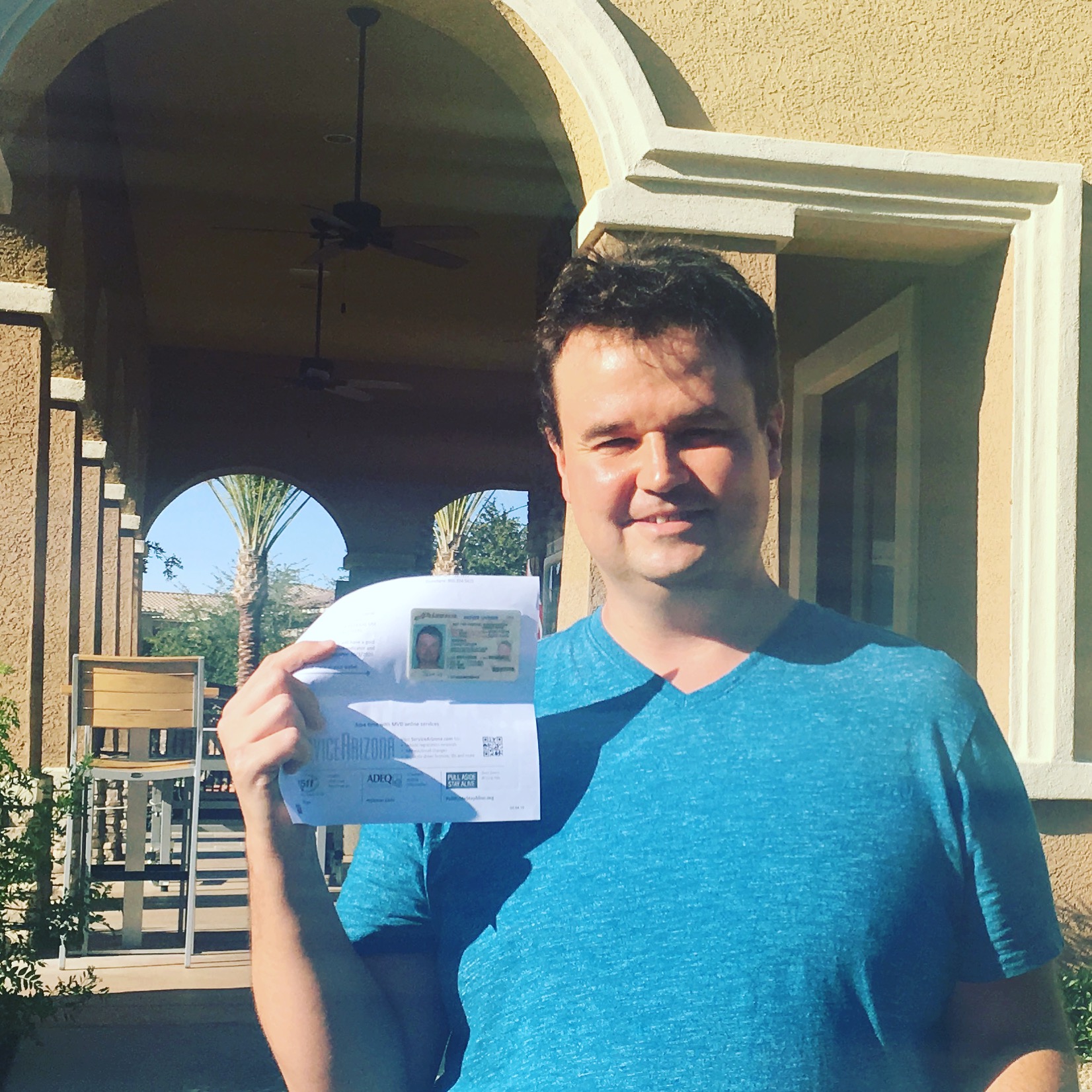 Chris is now licensed to drive in the state of Arizona. This was a bit of nerve wracking process for him. He is an excellent driver, but the list of nations that have agreements that allow their citizens to just come to the US, hand over their foreign license and get a local one are very few. Germany is one of them; Britain happens to not be. As a result, Chris had to take the entire test all over again as an adult. Needless to say, he was pretty nervous at the prospect of doing this, especially once he found out that you can only fail 3 times and then have to wait a whole year to do the test again. He even signed up for a one off driving lesson just to have an American instructor give him a few pointers and tell him whether he was ready for the test.
