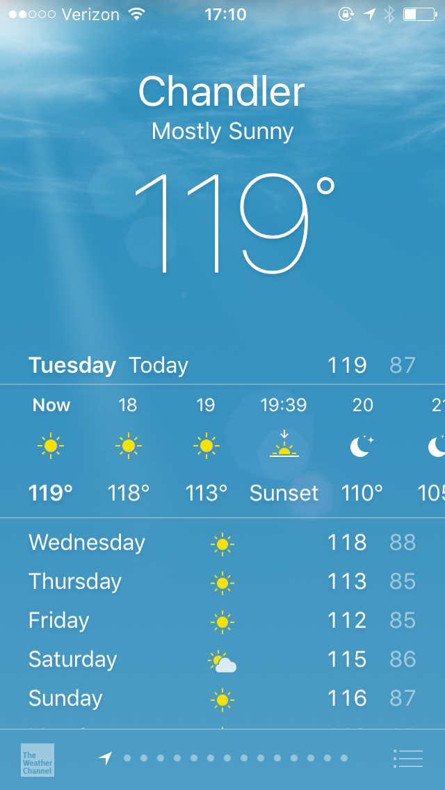 So last year, we did a blog post on the heat, as it’s what Arizona is known for. The hottest day of the year so far happened to coincide with the first day of summer in Arizona, which for time zone reasons happened the day before it happened in much of the rest of the country and Britain. And I am sure of this, as Google tells me so: