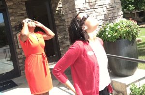 We had a walk around outside and shared our glasses with a few people, including the girls who work at the leasing office. At least one of them had never seen an eclipse before, so I’m glad we were able to share it with them: