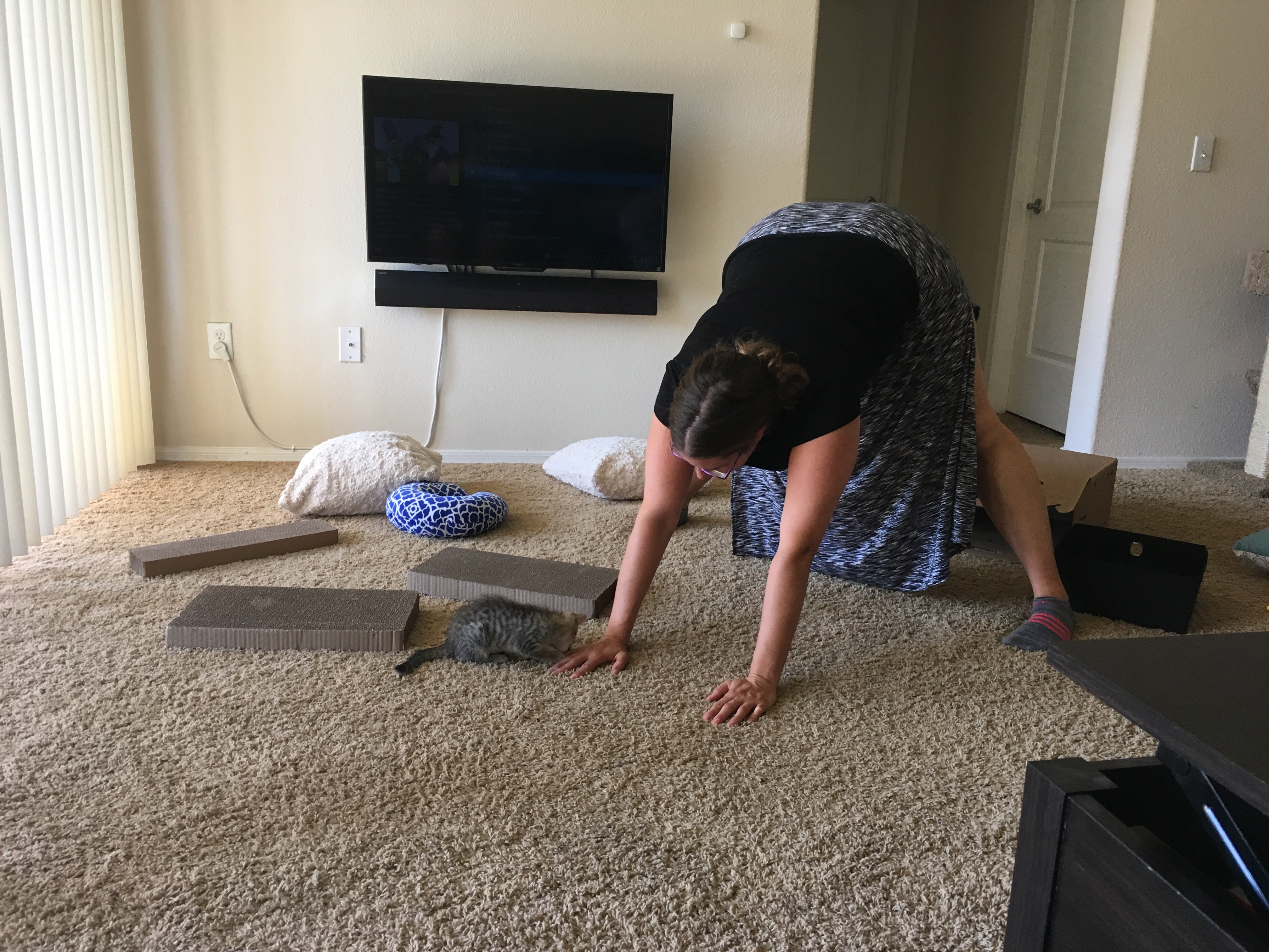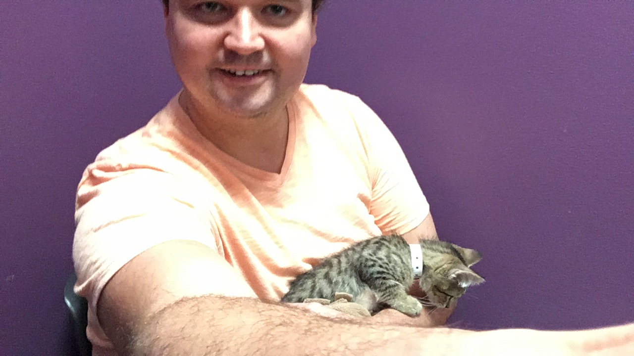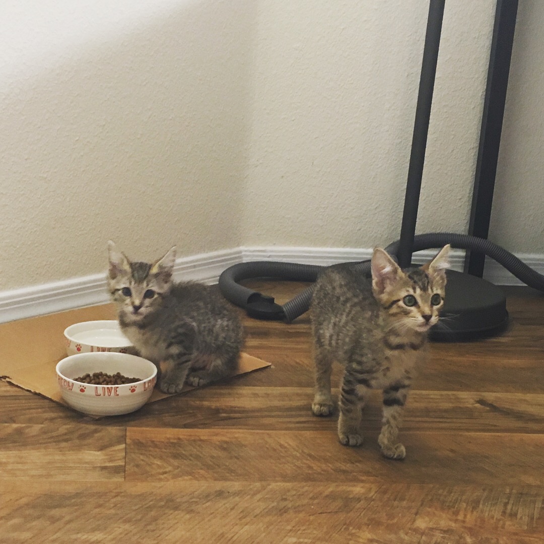 We were able to meet all three criteria in two near identical kittens. Here are a few photos of us meeting them at the shelter: