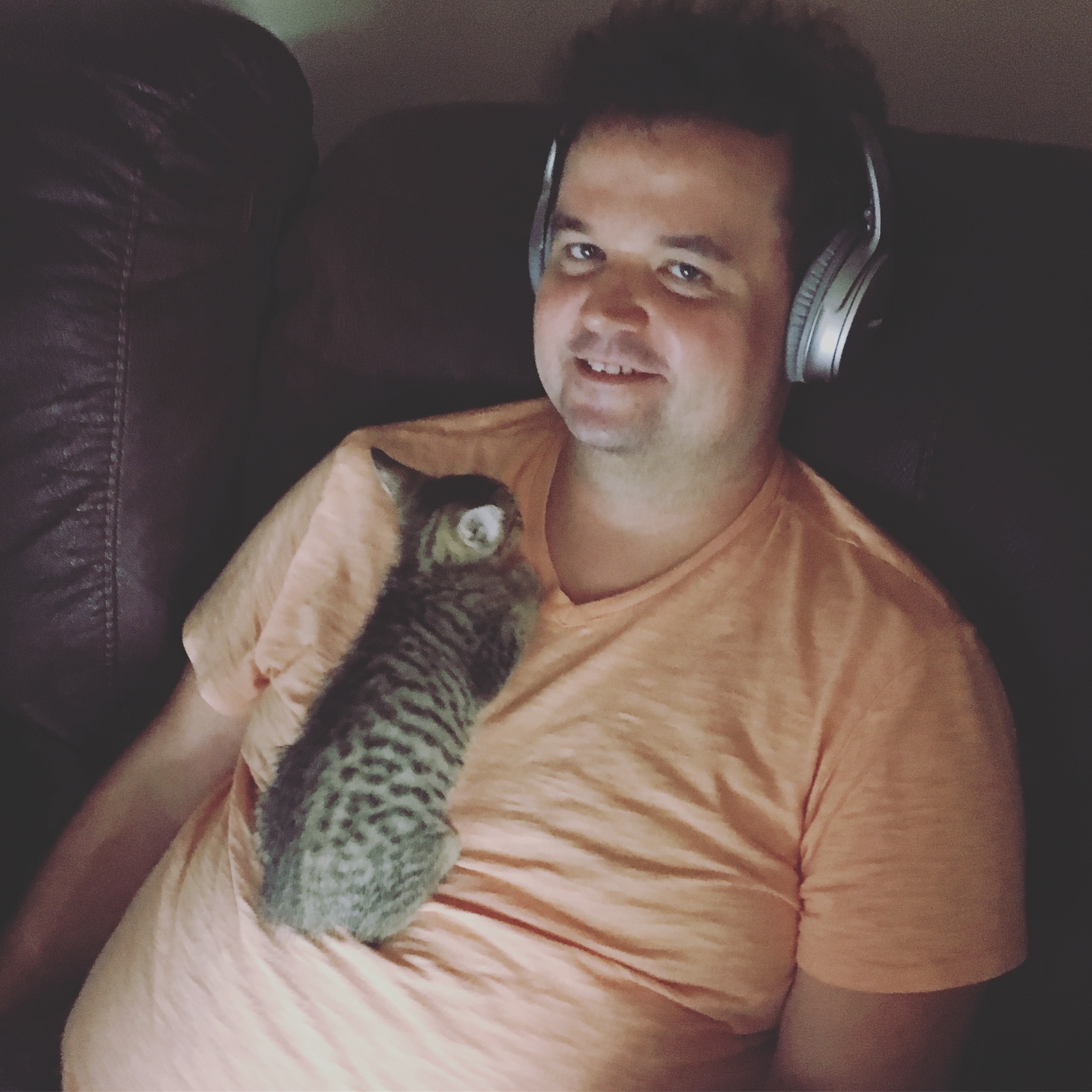 Here is Chris with the kittens ready for their 20 mile car journey home: