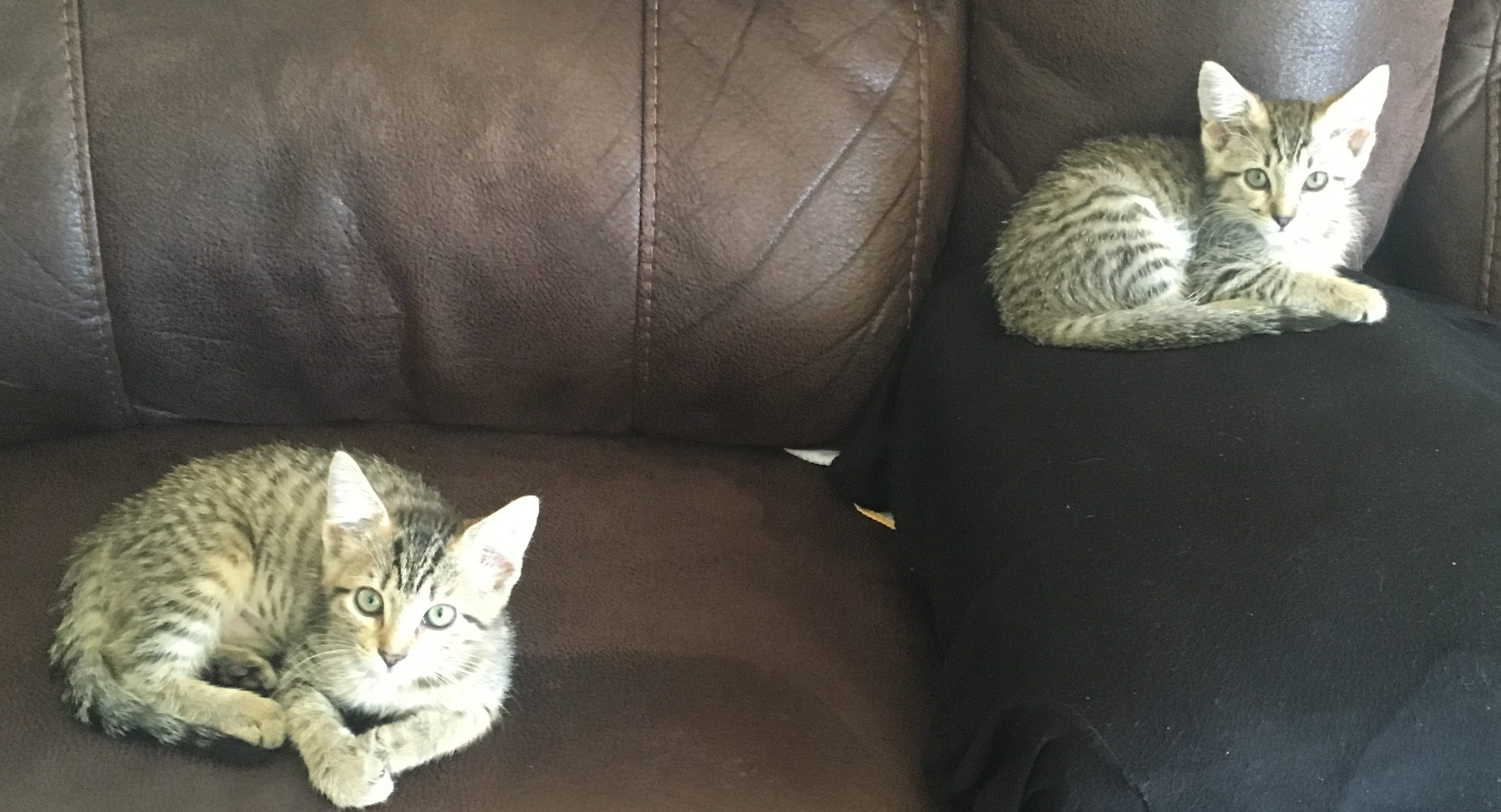 We took them to the vet for the first time, which was also the first time either of us had to take our own pet to the vet. It was a little bit harrowing, but went fine. The vet was of the opinion that the cardboard carriers we got at the shelter were actually fine for short journeys (this was about 5 miles down the road). We will see how that goes, but we did feel bad just putting them in a dark box. Both were healthy and the visit was actually covered by the humane society, so that all went fairly positively.