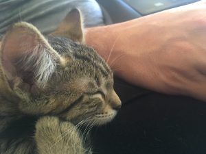 When we got the kittens, we were told they were 9 weeks old. We don’t know their exact birthday. I think they did very well for their first week in a new place. I believe they were fostered before we got them because they were a little under weight. They have likely been in a few locations in the last few weeks at any rate.