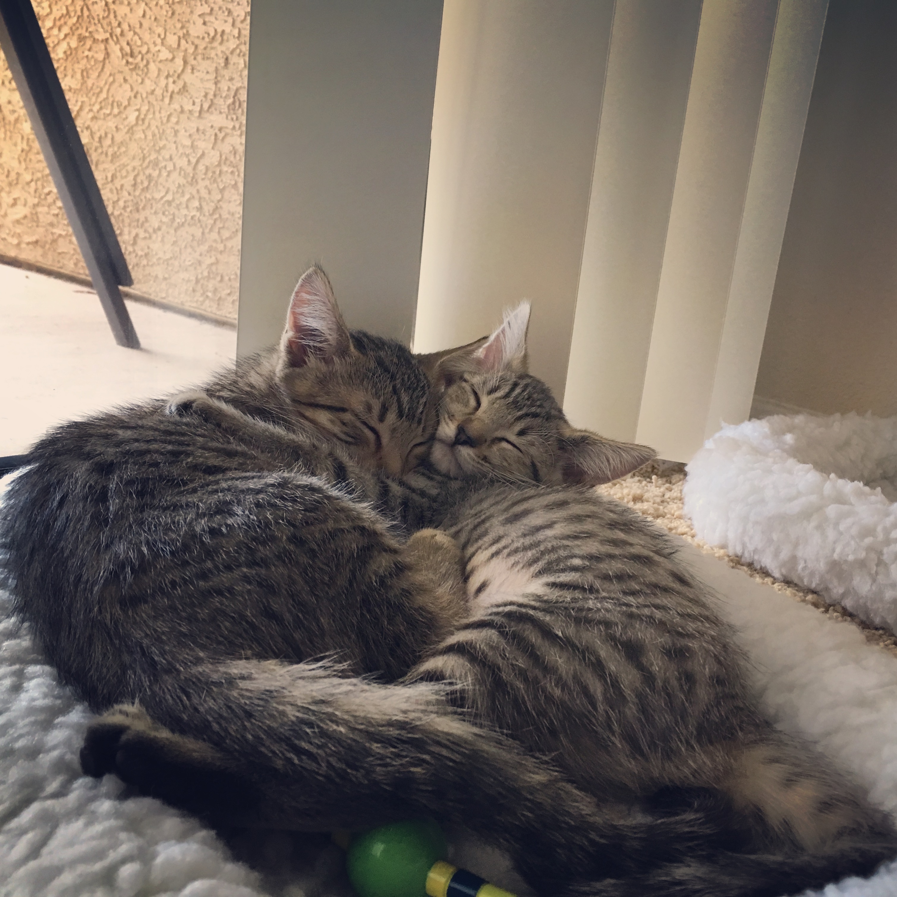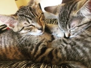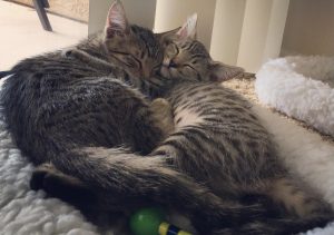 We were finally able to tell who was who consistently by the end of our second week with the kittens. Towards the start, it was mainly behavior based. Kasia was much more interested in people, while Zosia didn’t want to be petted as much and would go off on her own a lot more. Either way, they seem to get along very well with each other: