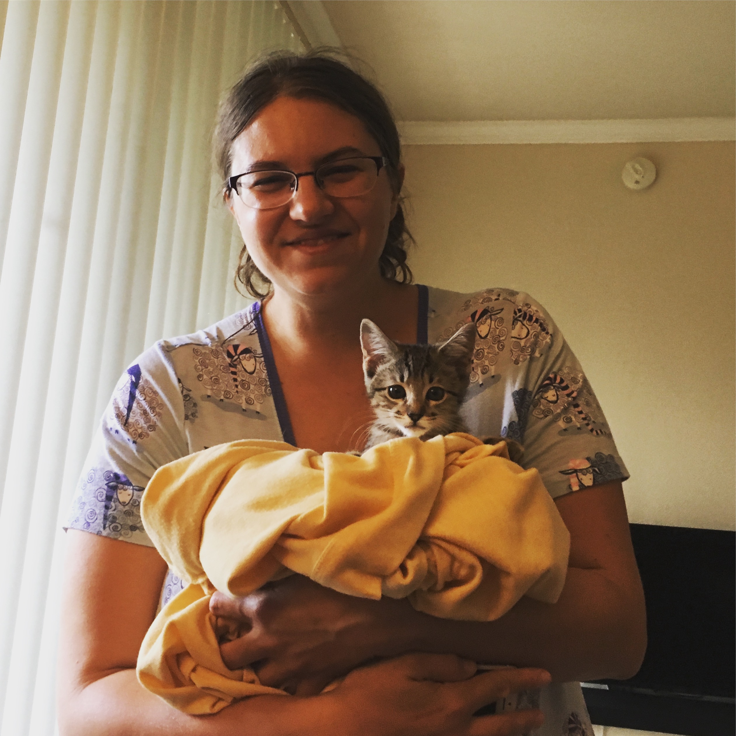 In our third week with the kittens, they both seemed very comfortable. Their comfort led them to want to go exploring more, which led to further cat proofing. So many people we’ve talked to seemed to think cat proofing was impossible, but I don’t think this people think as far out of the box as Chris does. Whenever they got into the bedroom, it was stressful because they wanted to go running under the king bed, far out of reach in the middle. Chris just filled the bed’s underside with foam. Problem solved. There is nowhere to run under the bed now, so they don’t do it any more and it is much easier for them to be managed in the bedroom.