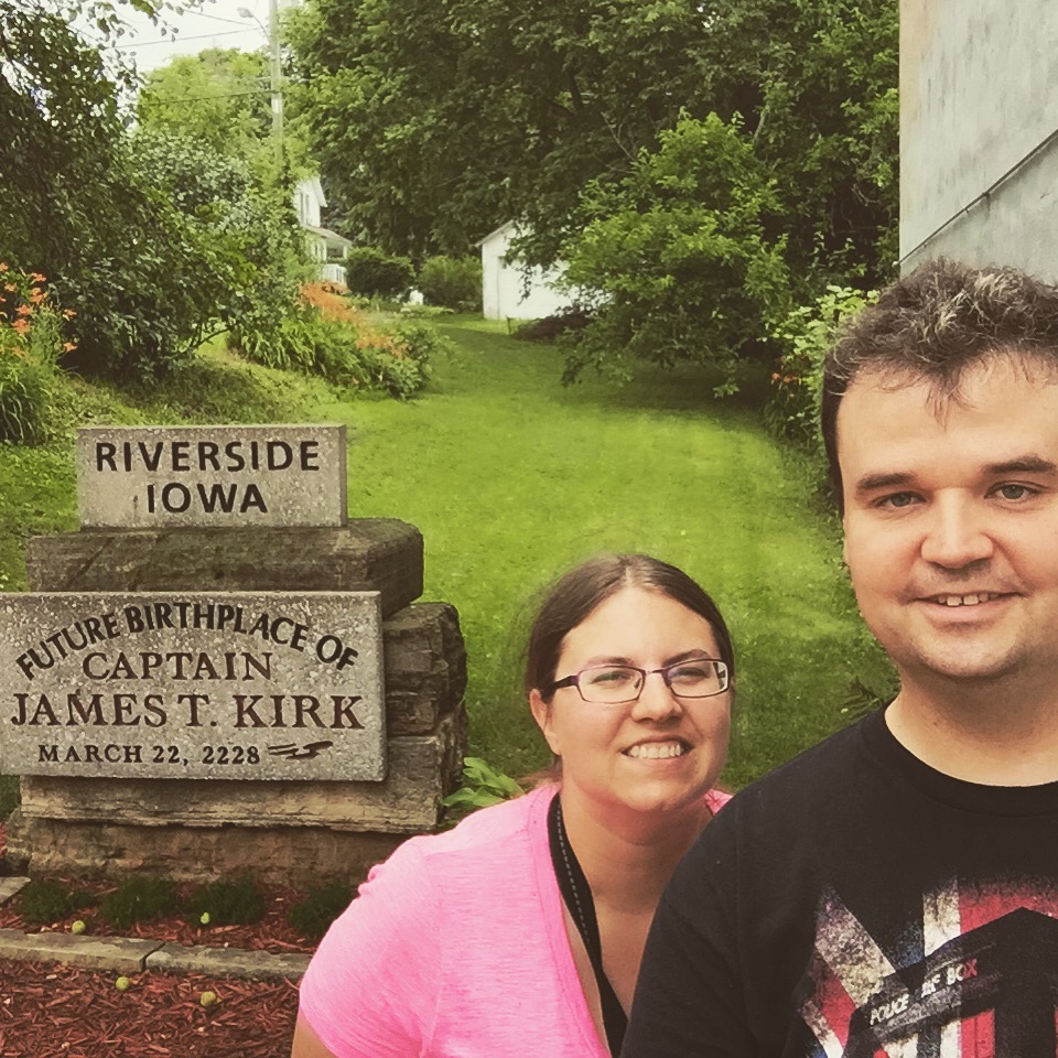 They have a little Star Trek museum there, run by an old woman who just really likes Star Trek. We actually missed their yearly festival by two days. Oh well, maybe next time we’re in Iowa. We liked it enough that we bought our first bumper sticker (for either of us, given this is my first car and Chris just never bought one before). See the video below to see what we picked up, plus the rest of the Trekkie fun: