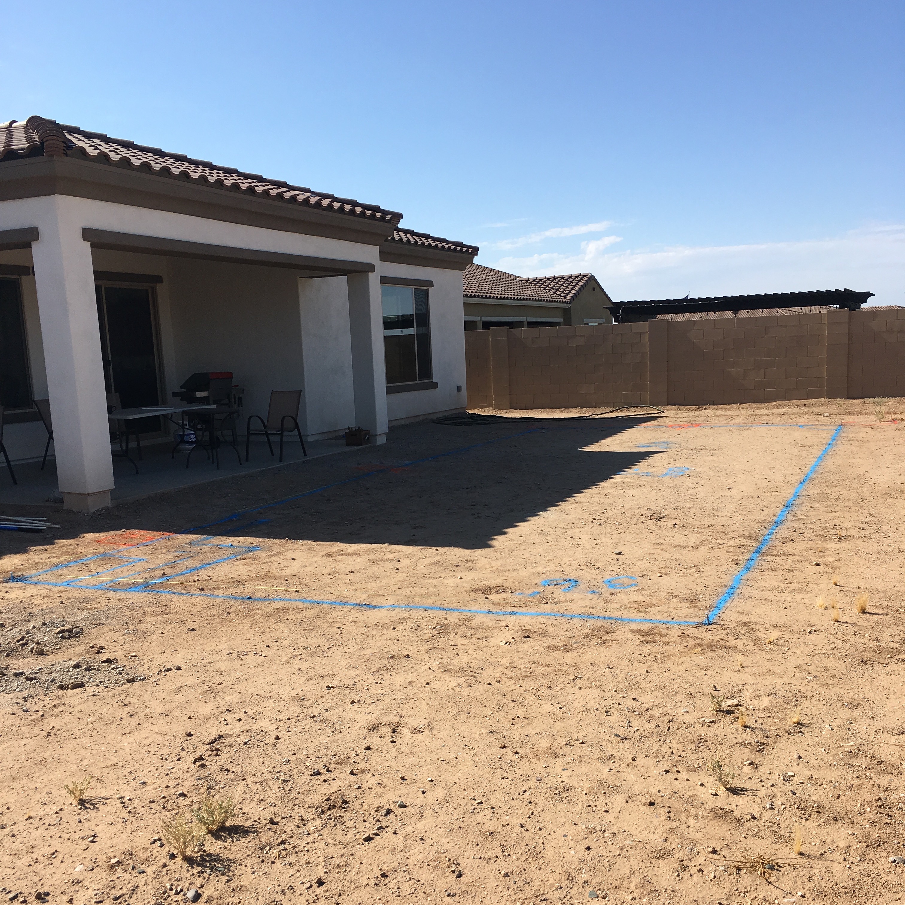 When we started looking at houses in early 2018, we knew wherever we moved, it needed to have a pool to replace the amazing pool and spa we got used to at Stone Oaks in Chander. We have been planning it since mid-April with the owner of Monster Pool Company. We signed last week and this week the foreman, Andy, came over and measured and drew the pool.
