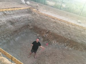 The crew came back Monday to finish the dig. Apparently it normally takes 4-6 hours to dig an average pool (e.g. not a hard dig and probably more like 5-6 feet deep). It took them 8 hours the first day followed by nearly 15 the second day. The arrived with the sun and were finishing the job as it went down.