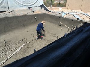 After the monsoon related delays, the shotcrete is finally in. Shotcrete is a form of concrete, but we only found out why the word “shot” is in it today. It is basically shot at high pressure out of a sort of massive hose.