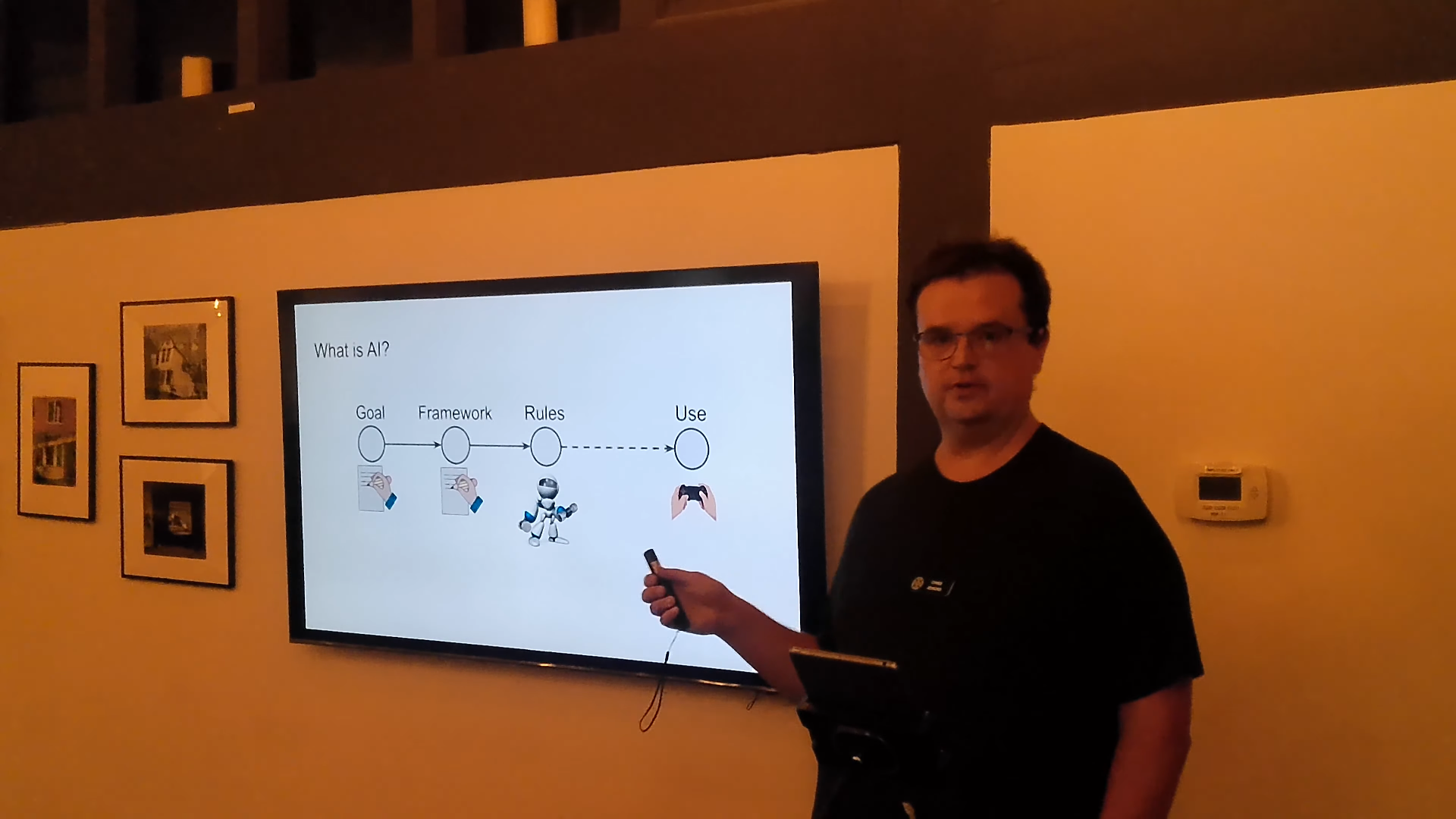 The night started with my struggling to get my iPad connected to the screens. Fortunately, I had brought just about every cable I could find to the event so that was resolved in time. I was rather nervous to speak in public since I hadn’t given a presentation to a room of people since I was at university. Also, it wasn’t obvious to me whether I was fully qualified to speak on the topic of artificial intelligence. In 2000, I graduated with a Computer Science and Artificial Intelligence degree and a few years ago I wrote an AI as part of a Machine Learning course though that hardly qualifies me as an expert.